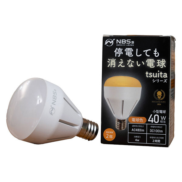 | 商品の特徴 | 停電しても消えない電球「coconimo tsuita」は、内部にバッテリーが搭載された、停電しても消えない電球です。普段は明かりとして使用しているだけで自動的に充電されるので、停電したあとにも点灯し続けます。停電時には2時間点灯し続けます。 | ||