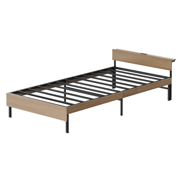 アイリスオーヤマ ウッドスチールベッド 宮付き 幅1002×奥行2051×高さ541mm ブラック/ナチュラル 1台(直送品)