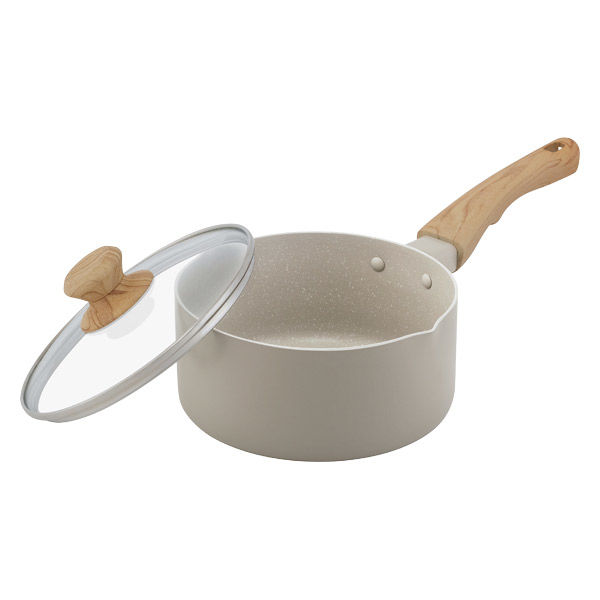 | 商品の特徴 | 注ぎ口が2か所付いているため、液体などを注ぎやすい形状となっています。ナチュラルカラーと木目調のハンドル・ガラスふたのつまみは、キッチンに馴染みやすく可愛らしいデザインです。内側はマーブル模様です。有害物質(PFOA/PFOS)不使用の塗料を使用しているため、安心してお使いいただけます。 | ||