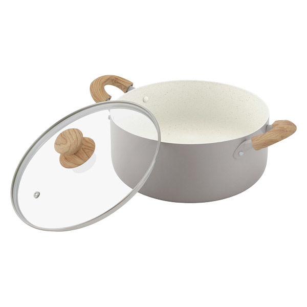 | 商品の特徴 | 注ぎ口が2か所付いているため、液体などを注ぎやすい形状となっています。ナチュラルカラーと木目調のハンドル・ガラスふたのつまみは、キッチンに馴染みやすく可愛らしいデザインです。内側はマーブル模様です。有害物質(PFOA/PFOS)不使用の塗料を使用しているため、安心してお使いいただけます。 | ||