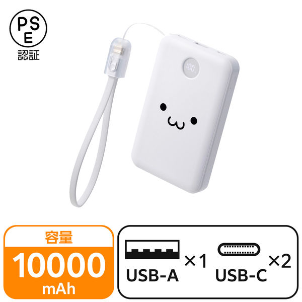モバイルバッテリー 10000mAh ストラップ型ケーブル付 小型 電池残量表示 しろちゃん EC-C45WF エレコム 1個(直送品)