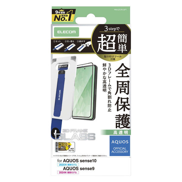 AQUOS sense10/AQUOS sense9 ガラスフィルム 高透明 フレーム付 PM-S253FLGFT エレコム 1個(直送品)