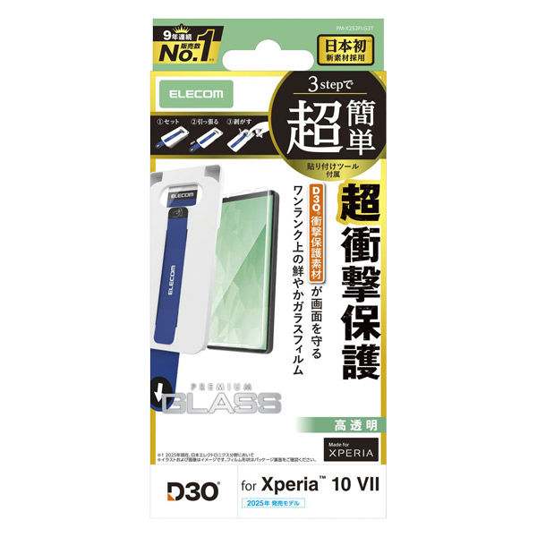 Xperia 10VII ガラスフィルム 高透明 D3O(R) 超衝撃保護 10H PM-X252FLG3T エレコム 1個(直送品)