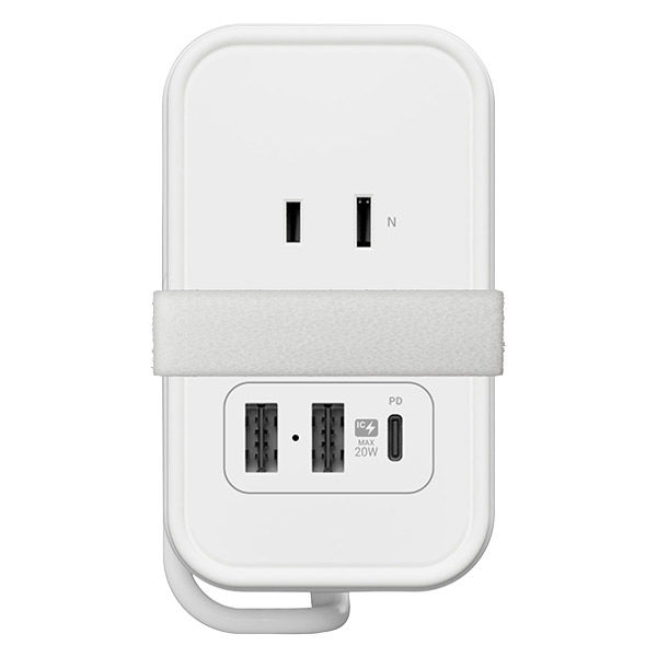 | 商品の特徴 | コードを本体に巻きつけスッキリ収納できるから旅行にぴったりの電源タップです。国内・海外兼用で使用でき、ACコンセント×3、USB-A×2、Type-C×1のポートを搭載しており、複数ポート同時使用もOKです。Type-CポートはUSB PDに対応でスマホやタブレットの高速充電が可能。狭い場所でも挿し込みやすいスイングプラグ採用、巻き付けたコードを固定てきる固定用マジックバンド付き。 | ||