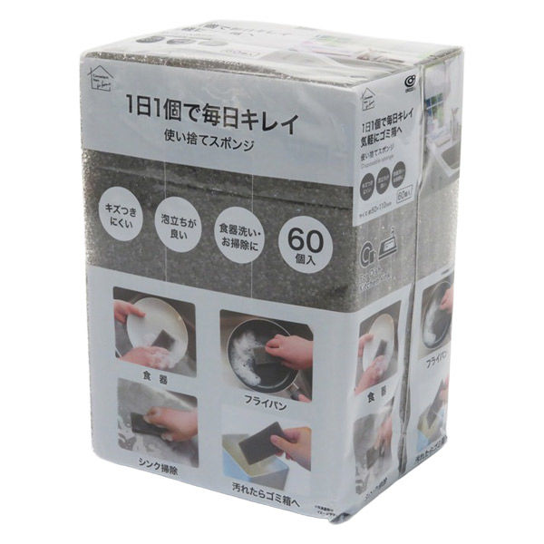 | 商品の特徴 | 使い捨てスポンジ 60個入/使い捨てる事で衛生的に!●傷つきにくい、泡立ちがよい、食器洗い、お掃除に!●排水口、シンク掃除、フライパンの油汚れ、洗面台など!ちょこっとお掃除にも便利です | ||
