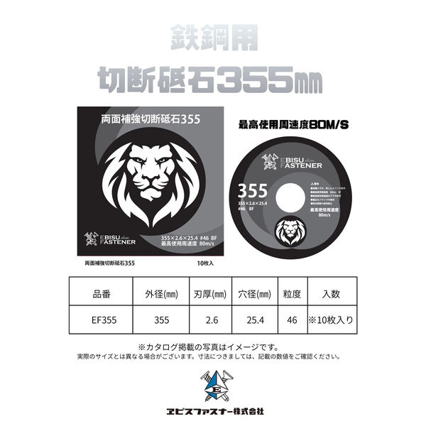 エビスファスナー エビス両面補強切断砥石 355 EF355 1ケース(10枚)(直送品)