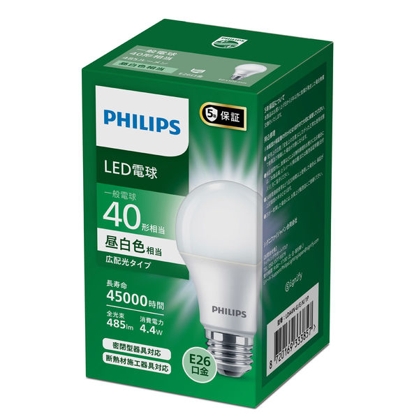 Philips LED電球 E26 広配光タイプ 40W相当 LDA4N-G/E/K/1P 1個(直送品)