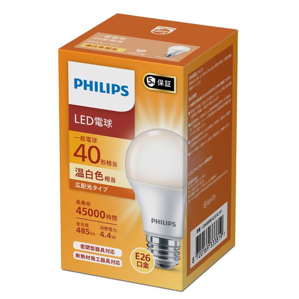 本商品:Philips LED電球 E26 広配光タイプ 40W相当 LDA4WW-G/E/K/1P 1個(直送品) |