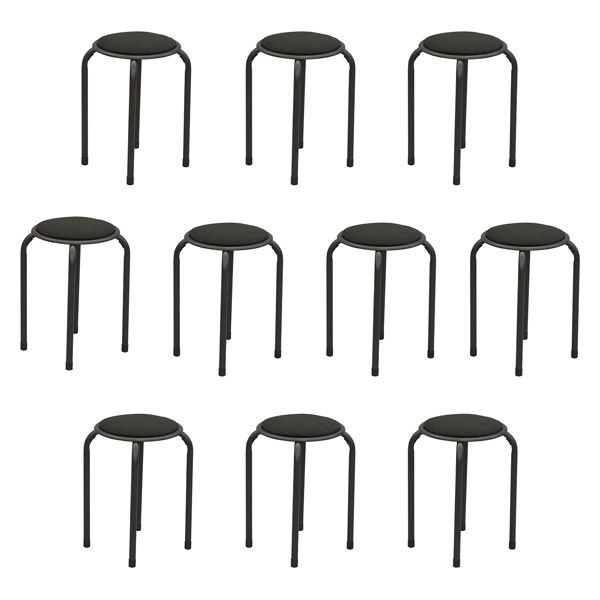 | 商品の特徴 | 座面高約45cmで立ち座りがしやすく、日常使いにぴったりなスツールです。使用しない時は最大10脚まで積み重ねて収納でき、省スペースにすっきり片付け可能。脚部には床傷を防ぐキャップと、スタッキング時の擦れを防止するクッション材を装備。さらっとした肌触りのポリエステル張地とウレタン入り座面で、快適な座り心地を実現しました。シンプルでどんな空間にも馴染むデザイン。ブラックとグレーの2色展開、完成品で届いてすぐ使えます。 | ||