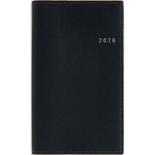 【2026年3月始まり】持ち運びやすいコンパクトサイズ。高級感あふれるステッチ入りの皮革調カバーの週間レフトタイプのウィークリー。