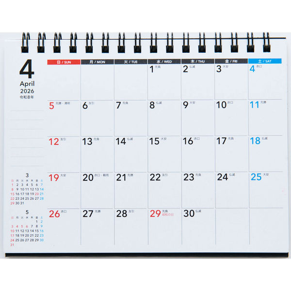 【2026年4月始まり】シンプルでスタイリッシュなデザインの卓上カレンダー。便利なメモスペース付きで月のToDoなども管理できます。
