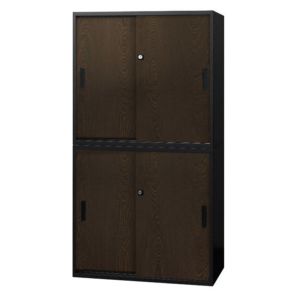 Netforce イーセンブリー 引戸書庫 2台セット 2段 シリンダー錠 幅800mm スチール ダークブラウン 1セット(2台入)(直送品)