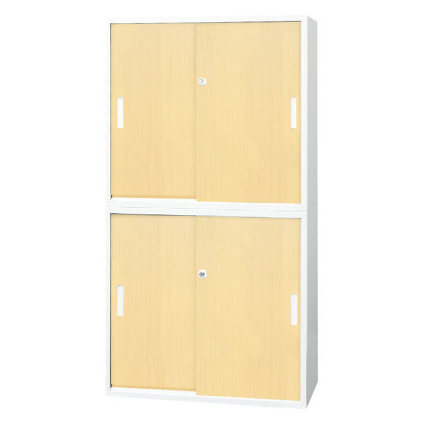 Netforce イーセンブリー 引戸書庫 2台セット 2段 シリンダー錠 幅800mm スチール ナチュラル 1セット(2台入)(直送品)