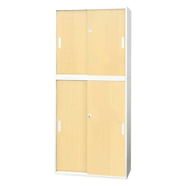 Netforce イーセンブリー 引戸書庫 2台セット 2段×3段 シリンダー錠 幅800mm ナチュラル 1セット(2台入)(直送品)