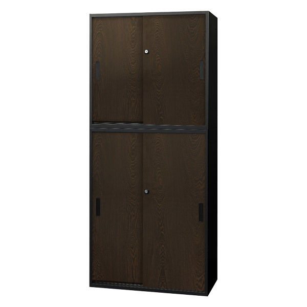 Netforce イーセンブリー 引戸書庫 2台セット 2段×3段 シリンダー錠 幅800mm ダークブラウン 1セット(2台入)(直送品)