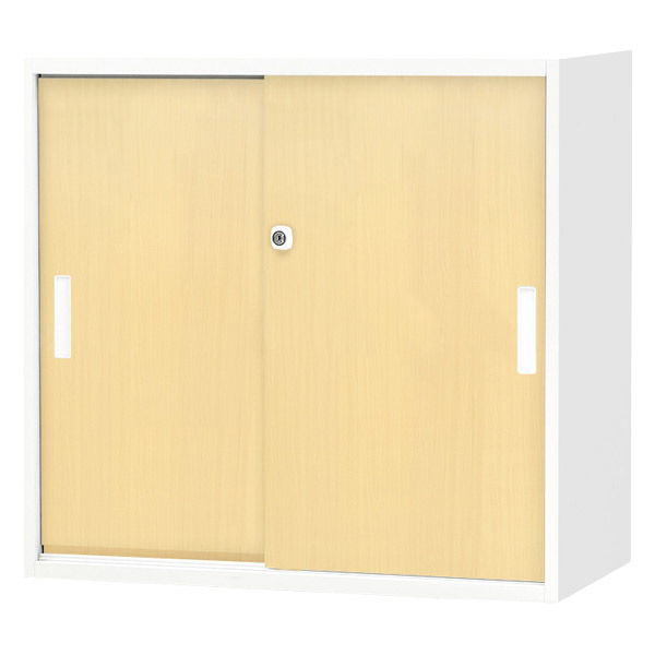 Netforce イーセンブリー 引戸書庫 2段 シリンダー錠 幅800mm スチール 木目 ナチュラル 1台(直送品)