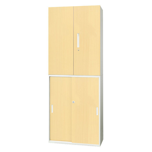 Netforce イーセンブリー 両開き書庫1台+引戸書庫1台 3段×3段 シリンダー錠 スチール ナチュラル 1セット(直送品)