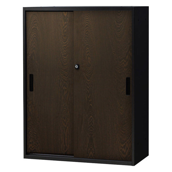 Netforce イーセンブリー 引戸書庫 3段 シリンダー錠 幅800mm スチール 木目 ダークブラウン 1台(直送品)