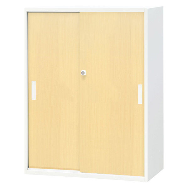 Netforce イーセンブリー 引戸書庫 3段 シリンダー錠 幅800mm スチール 木目 ナチュラル 1台(直送品)