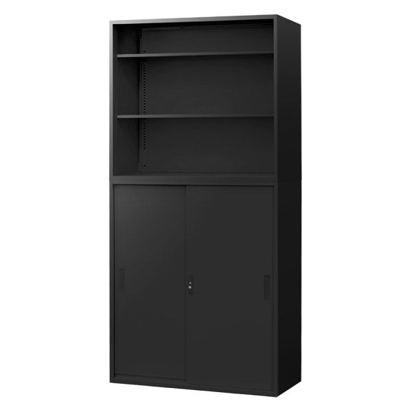 Netforce イーセンブリー オープン書庫1台+引戸書庫1台 3段×3段 シリンダー錠 幅880mm ブラック 1セット(直送品)