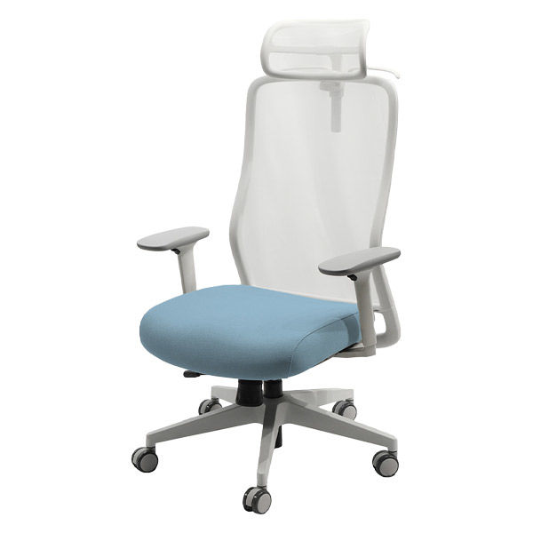 Netforce シースルーチェア オフィスチェア 肘付き ヘッドレスト ホワイトフレーム×座面ネモフィラブルー 1脚(直送品)