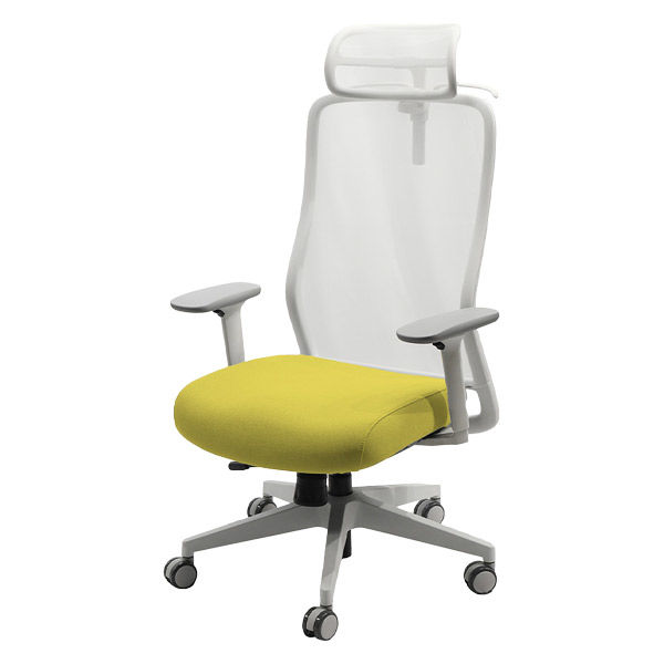Netforce シースルーチェア オフィスチェア 肘付き ヘッドレスト ホワイトフレーム×座面ミモザイエロー 1脚(直送品)