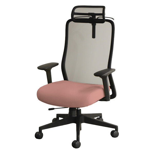 Netforce シースルーチェア オフィスチェア 肘付き ヘッドレスト ブラックフレーム×座面ダリアレッド 1脚(直送品)