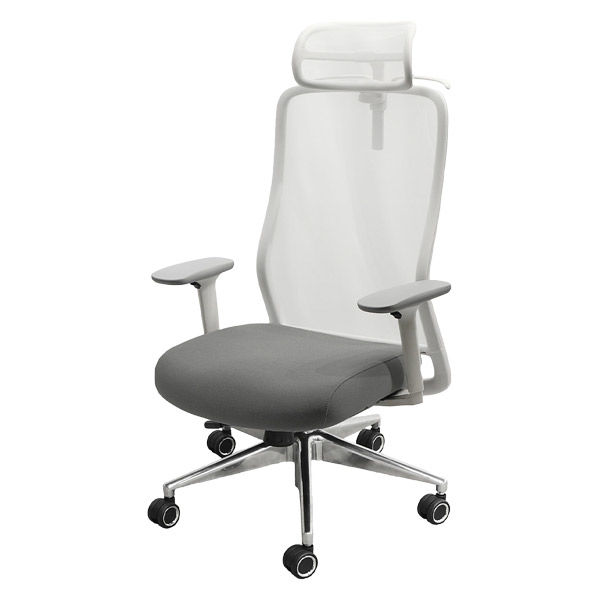 Netforce シースルーチェア チェア 肘付き アルミ脚 ヘッドレスト ホワイトフレーム×座面スレイトグレー 1脚(直送品)