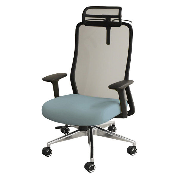 | 材質 | 背もたれ/ガラス繊維強化ポリアミド(GF)メッシュ+ナイロンフレーム 座面/ファブリック+モールドウレタン+ナイロンベース ヘッドレスト:ガラス繊維強化ポリアミド(GF)メッシュ+ナイロンフレーム ハンガー:ポリプロピレン アームレスト/ポリウレタン シリンダー/クラス3リフト+クロムメッキ ベース/アルミ キャスター/60mmポリウレタン+メッキ塗装 | カラーグループ | ブルー系 |