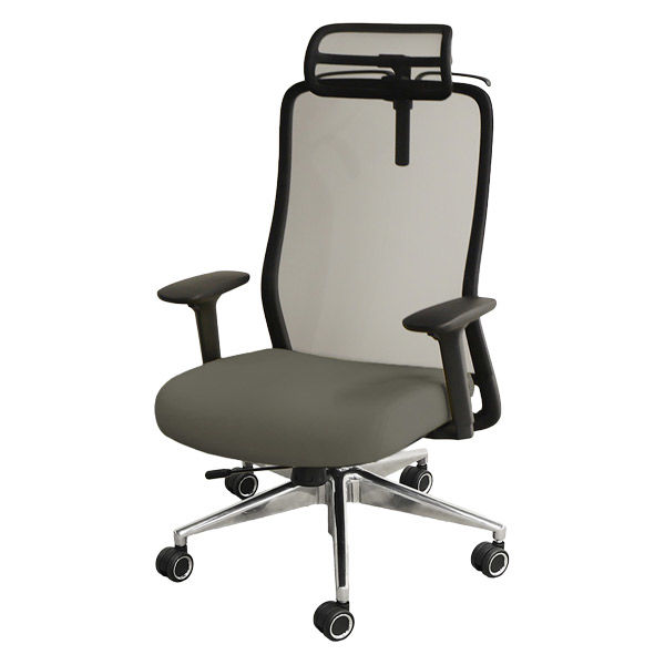 Netforce シースルーチェア チェア 肘付き アルミ脚 ヘッドレスト ブラックフレーム×座面スレイトグレー 1脚(直送品)