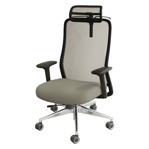 Netforce シースルーチェア チェア 肘付き アルミ脚 ヘッドレスト ブラックフレーム×座面ストーングレー 1脚(直送品)