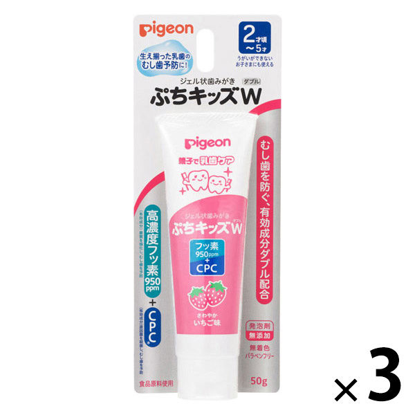 【2才頃から】 ピジョン ジェル状歯みがきぷちキッズダブル さわやかいちご味 50g 1セット(1個×3)