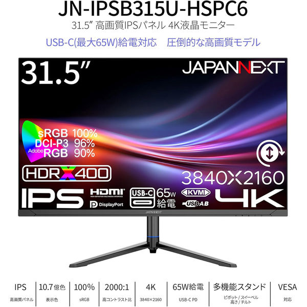 本商品:JAPANNEXT 31.5インチ ワイド 4K液晶ディスプレイ JN-IPSB315U-HSPC6 1台(直送品)