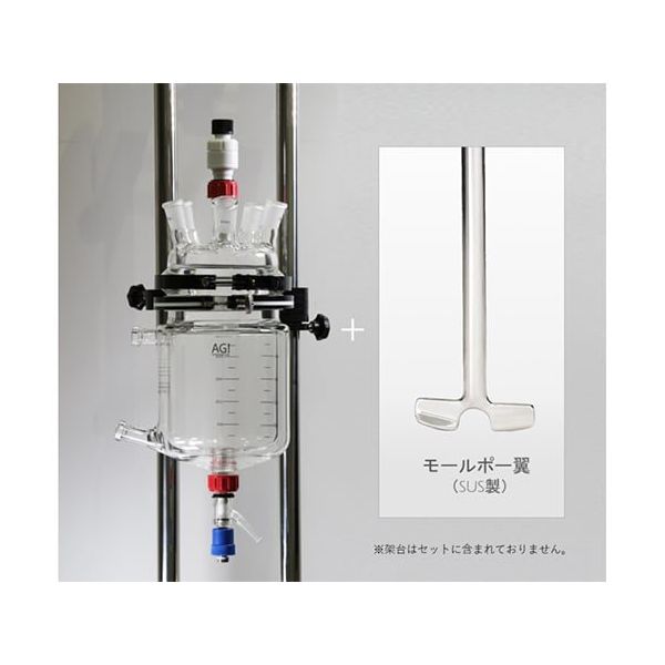 - ●撹拌翼の性能を最大限発揮できる適切な「翼径/槽径」の比率を考慮したセットです。反応容器と撹拌翼をそれぞれ選定する必要がありません。●反応実験に必要な反応容器、カバー、撹拌シール、撹拌翼といった製品を組み合わせました。(冷却器や滴下ロート等含まれておりません)●反応容器は生産機と相似形の「10%鏡板形状」のため、スケールアップ・スケールダウン検証での容器内の流動状態の確認などにもご活用いただけます。●高性能撹拌翼『モールポー(SUS製)』●三枚後退翼に代わる新型撹拌翼です。低・中粘度で三枚後退翼と比較し1.5~2.0倍の混合性能を誇ります。●高い撹拌効果で既設撹拌槽の性能向上に適しています。●撹拌翼容量の約3%の少液量でも、撹拌が可能です。●モールポー翼(シャフト径φ10、チャッキング部径φ6、翼径φ82mm、SUS304製)