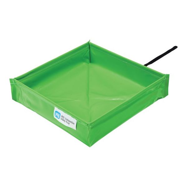 | 商品の特徴 | ●折りたためて持ち運びに便利です。必要な時にはさっと広げることができます。●コンパクトに折りたためるので、保管場所に困りません。●機器メンテナンス時の部品仮置場、部品洗浄時のトレーなど、少量の液体がこぼれた際の漏洩対策としておすすめです。●丈夫なコーナーサポートで、使用中にトレーの壁面が倒れないようになっています。●PVC素材で清掃が容易です。●視認性の高いグリーンカラーです。●防炎適合品 | ||
