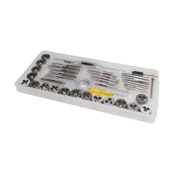 - ●・ボルト、ナットのネジ山の修正に使用するタップ、ダイスのセットです。・タップは荒削りから仕上げまでが可能な中タップを使用しています。・この1セットで、アメ車やハーレーで使われているほとんどのボルト、ナットのトラブルを解消することができます。●タップ/ダイス4-40UNC、6-32UNC、8-32UNC、10-24UNC、10-32UNF、12-24UNC、1/4-20UNC、1/4-28UNF、5/16-18UNC、5/16-24UNF、3/8-16UNC、3/8-24UNF、7/16-14UNC、7/16-20UNF、1/2-13UNC、1/2-20UNF、1/8-27NPT×各1タップハンドル×1