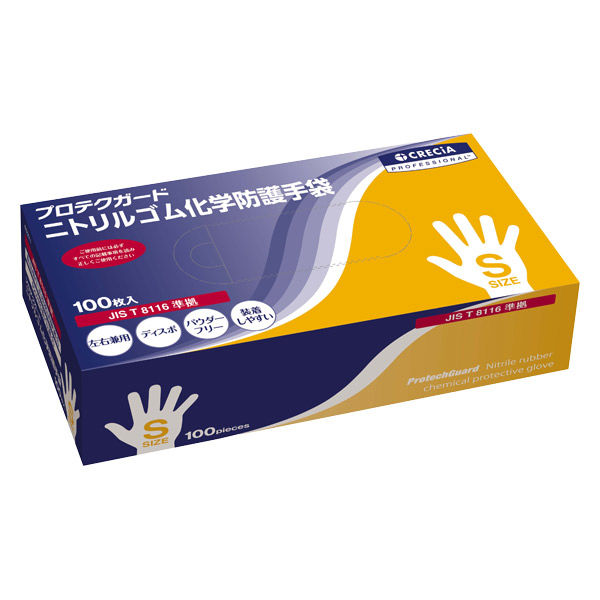 日本製紙クレシア プロテクガードニトリル化学防護手袋/小箱 69271ニトリルゴムカガクボウゴテブクロS 1箱(直送品)