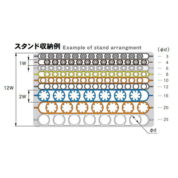 | メーカー名 | MSTコーポレーション | 商品仕様 | ●Φd(mm):25●W(mm):30(2W)●収納本数:7本/1スタンド●色:グレー |