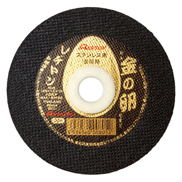 - ●【金の卵105×1.0×15】●外径(mm):105●穴径(mm):15●厚さ(mm):1●最高使用回転数(rpm):14400●粒度(#):60●最高使用周速度(m/s):80●硬度:P●砥粒:AZ●【金の卵108オフセット】●外径(mm):108●穴径(mm):15●厚さ(mm):1●最高使用回転数(rpm):14400●粒度(#):60●最高使用周速度(m/s):80●硬度:P●砥粒:AZ
