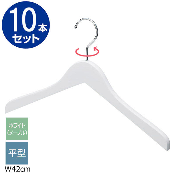ストア・エキスプレス 【10本】木製ハンガー ホワイト(メープル) 平型 幅42cm 6533-10102 1セット(10本)(直送品)