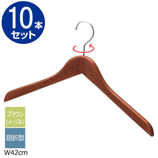 ストア・エキスプレス 【10本】木製ハンガー ブラウン(メープル) 屈折型 幅42cm 6533-13110 1セット(10本)(直送品)