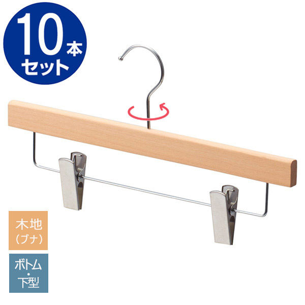 ストア・エキスプレス 【10本】木製ボトムハンガー 木地仕上げ(ブナ) 下型クリップ付き 6533-1442 1セット(10本)(直送品)