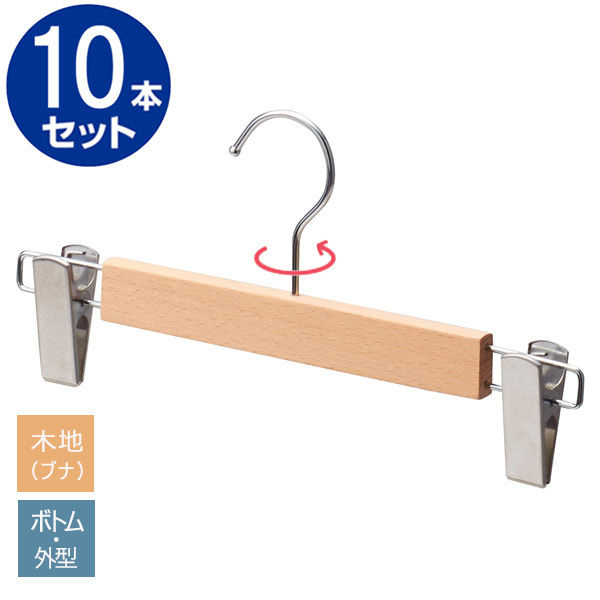 ストア・エキスプレス 【10本】木製ボトムハンガー 木地仕上げ(ブナ) 外型クリップ付き 6533-1443 1セット(10本)(直送品)