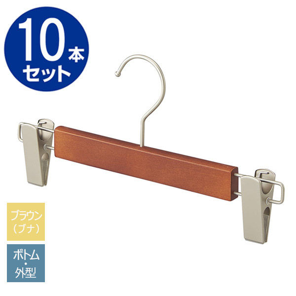 ストア・エキスプレス 【10本】木製ボトムハンガー(ブナ材) ブラウン 外型クリップ付き 6535-18286 1セット(10本)(直送品)