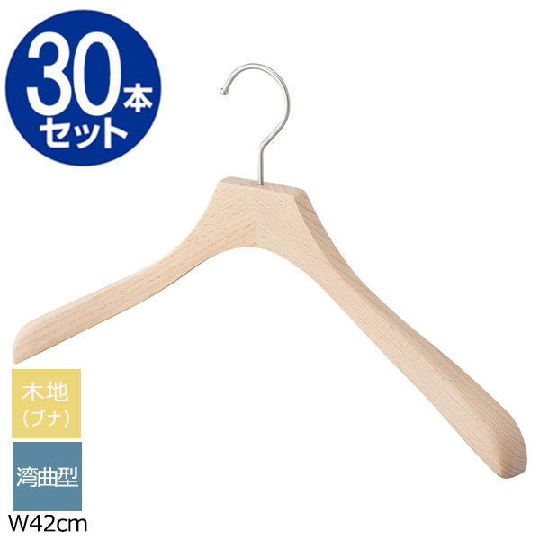 ストア・エキスプレス 【30本】木製ハンガー(ブナ材) 湾曲型 木地 幅42cm 6535-36280 1セット(30本)(直送品)