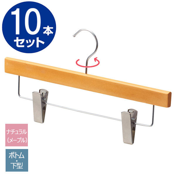 ストア・エキスプレス 【10本】木製ボトムハンガー ナチュラル(メープル) 下型クリップ付き 6788-1454 1セット(10本)(直送品)
