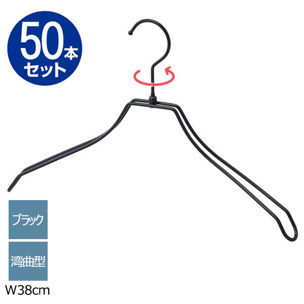 ストア・エキスプレス 【50本】湾曲スチール製ハンガー ブラック 幅38cm 7270-16019 1セット(50本)(直送品)