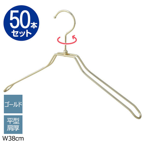 ストア・エキスプレス 【50本】平型スチール製ハンガー ゴールド 平型肩厚 幅38cm 7270-18006 1セット(50本)(直送品)