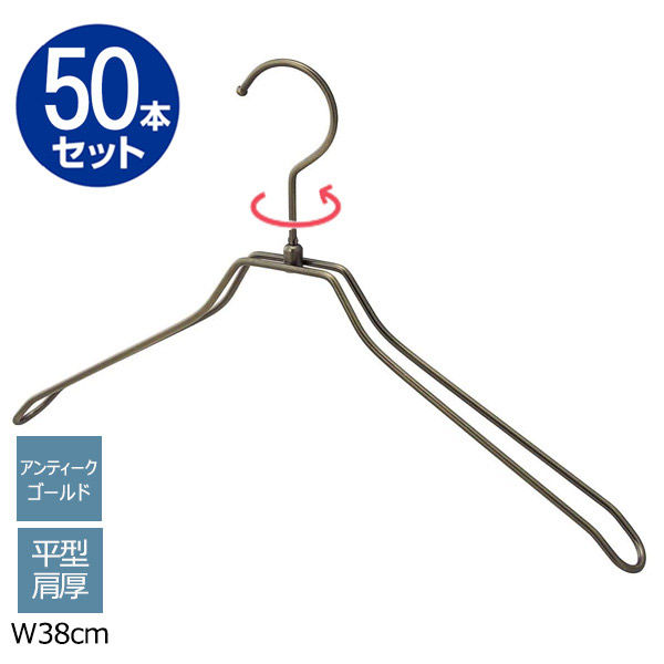 ストア・エキスプレス 【50本】平型スチール製ハンガー アンティークゴールド 平型肩厚 幅38cm 7270-18014 1セット(50本)(直送品)
