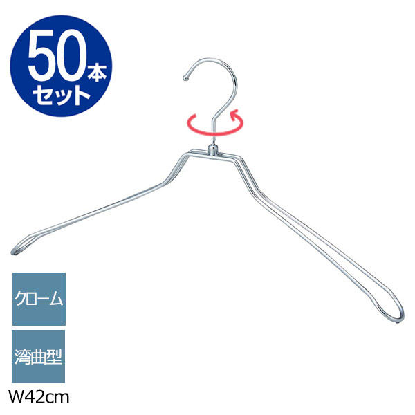 ストア・エキスプレス 【50本】湾曲スチール製ハンガー クローム 幅42cm 7270-6013 1セット(50本)(直送品)